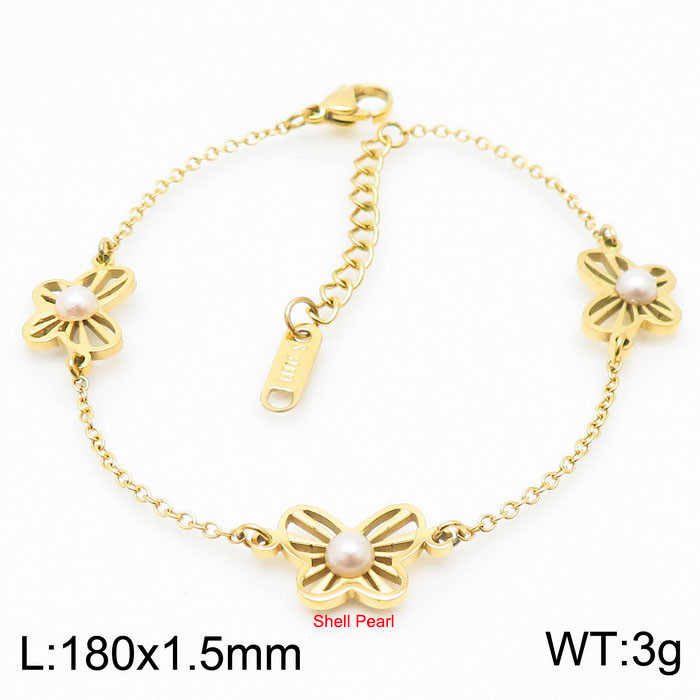 - 18cm Long Gold Color Stainless Steel Butterfly Shell Imitation Pearl Link Chain Bracelets For Women