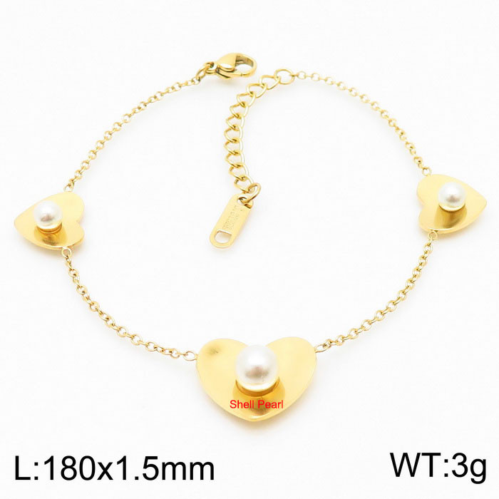 - Gold Color Link Chain Stainless Steel Heart Shell Imitation Pearl Bracelets For Women