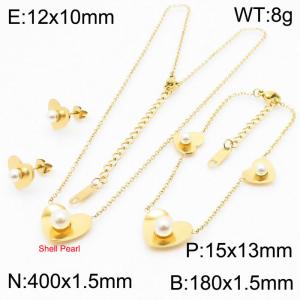 3pcs Gold Color Love Heart Jewelry Sets Stainless Steel Link Chain Shell Imitation Pearl Pendant Necklace Stud Eaarings Bracelets For WomenWholesale Price: