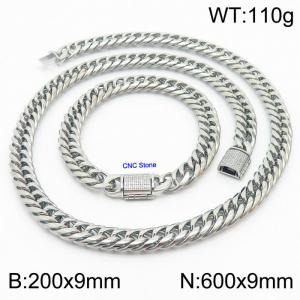 Stainless steel 200x9mm Necklace 600x9mm cuban chain Bracelet with CNC Stone clasp Steel SetsWholesale Price: