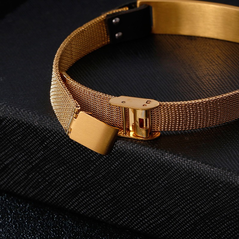 Stainless steel curved plate sand surface simple watch chain men's leather buckle Gold-plating Bracelet