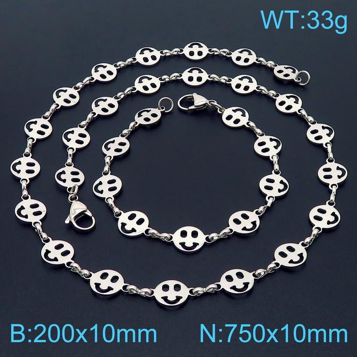 - Stainless steel 200 × 10mm&750 × 10mm Smiling Face Bow Splice Chain Lobster Buckle Fashion Personalized Jewelry Silver Bracelet