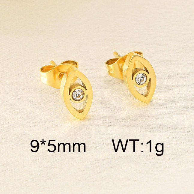 Stainless steel simple and fashionable hollow out eye shape inlaid with rhinestone gold earringsWholesale Price: