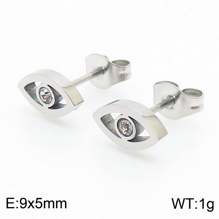 Stainless Steel Silver Plated Eye Shape Stud Earrings For Women With Small Cubic ZirconiaWholesale Price: