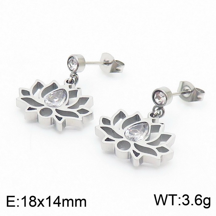 Silver-Plated Stainless Steel Lotus-Shaped Lightweight Women's Stud Earrings With CZ & GemstoneWholesale Price:
