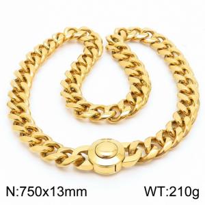 13 *750mm hip-hop style stainless steel Cuban chain circular buckle 18K gold-plated necklaceWholesale Price: