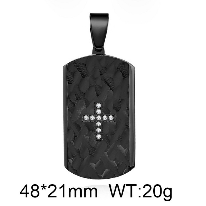 - Men Black-Plated Stainless Steel Tag Pendant with Rhinestones Christian Cross Pattern