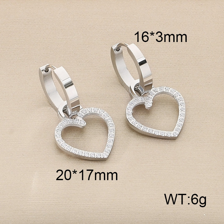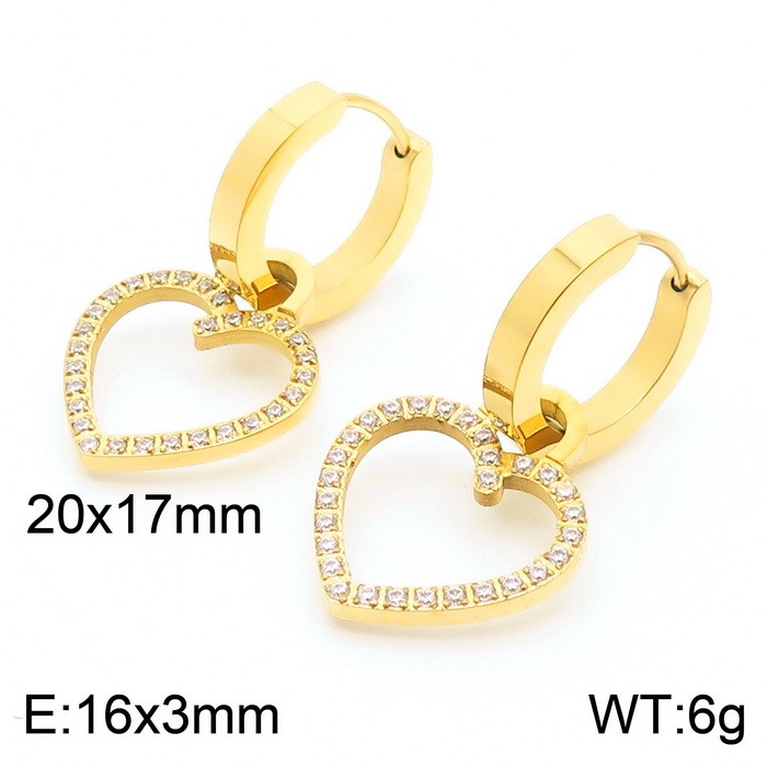 - Stainless steel fashionable circular hanging hollow heart-shaped diamond pendant charm gold earrings