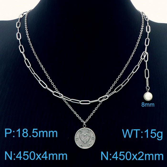 Stainless Steel Silver Color Heart In Circle Pearl Pendant Double Chain Necklaces For WomenWholesale Price: