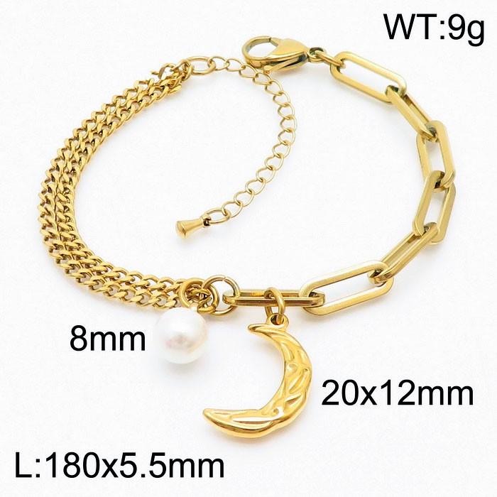 - Personalized Fashion Pearl Moon Titanium Steel Gold Bracelet