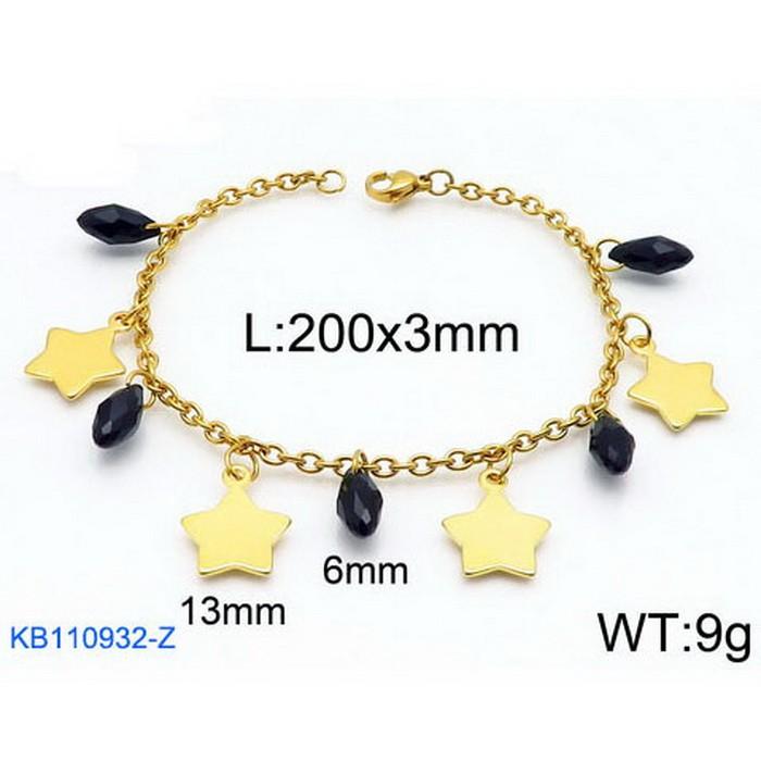 Fashion stainless steel 200 × 3mm O-chain black stone Pentagram pendant jewelry charm gold bracelet