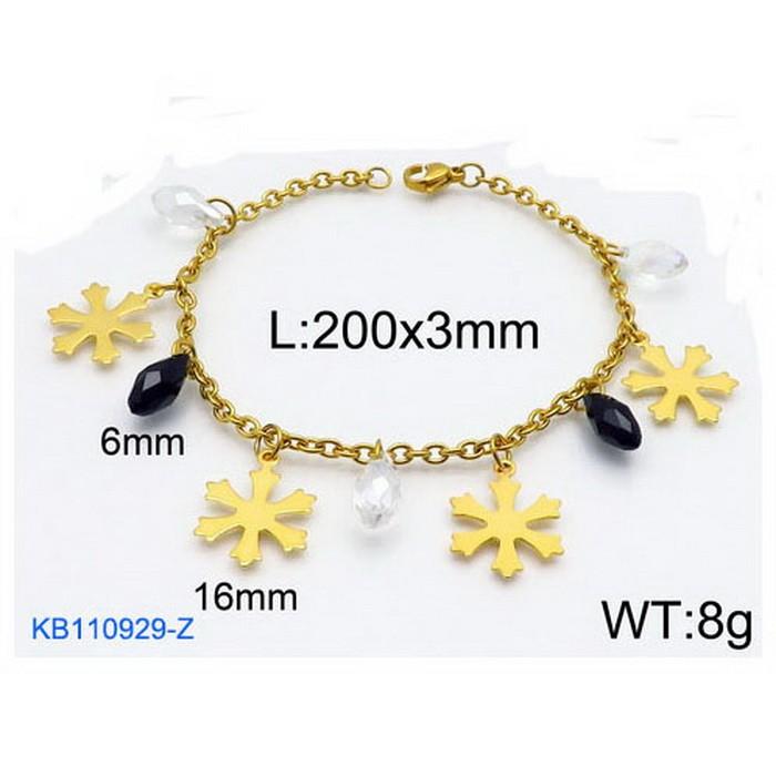 - Fashion stainless steel 200 × 3mm O-chain transparent and black diamond snowflake pendant jewelry charm gold bracelet