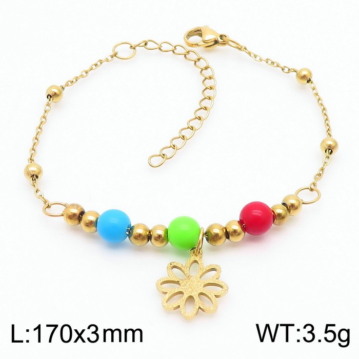 - Fashion stainless steel 175 × 3mm Mix and match color beaded patchwork bead chain hanging hollow lotus shaped accessory gold bracelet
