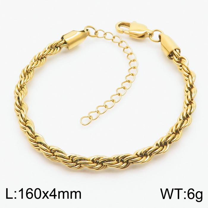 - 4mm Width Twist Chain Jewelry Women Stainless Steel Bracelet 16+5cm Gold Color