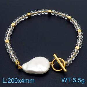- 20cm OT Link Chain Stainless Steel Bracelect With Gold Color Translucent Pearl Beads Accessories