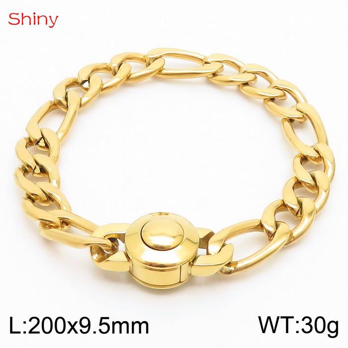 - Fashion stainless steel 200x9.5mm 3:1 thick chain circular polished buckle jewelry charm gold bracelet
