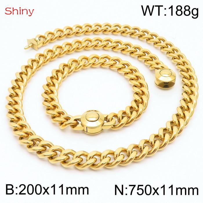 - Unisex Gold-Plated Stainless Steel Cuban Links&Round Clasp 750mm Necklace&200mm Bracelet Jewelry Set