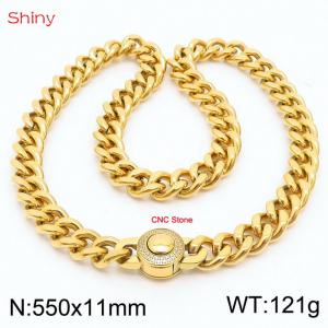 550X11mm Unisex Gold-Plated Stainless Steel&CNC Stones Cuban Links&Round Clasp NecklaceWholesale Price: