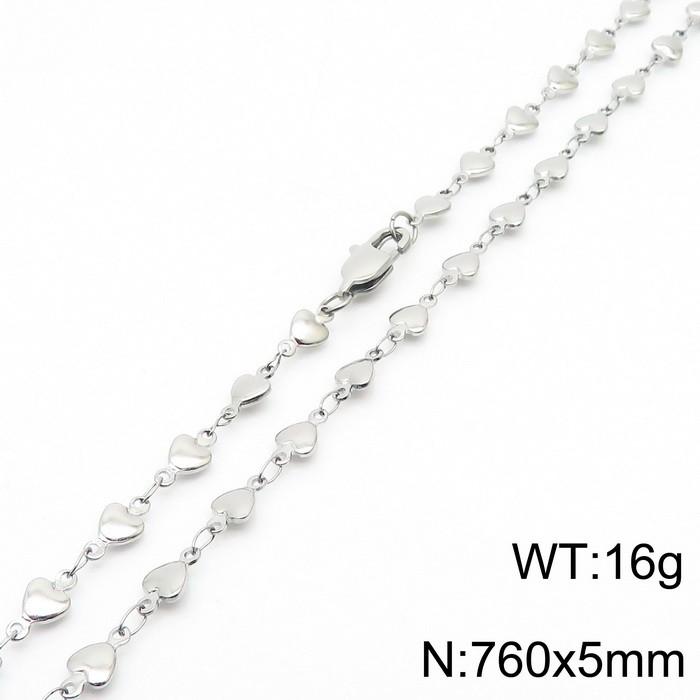 - 760×5mm Silver Color Stainless Steel Heart Chain Necklaces For Women Men
