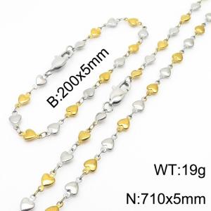 Gold Silver Color Stainless Steel Heart Chain 710×5mm Necklaces 200×5mm Bracelet s Jewelry Sets For Women MenWholesale Price: