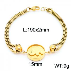 - 190mm Women Gold-Plated Stainless Steel Box Chain Bracelet with Cute Elephant Disc Charm