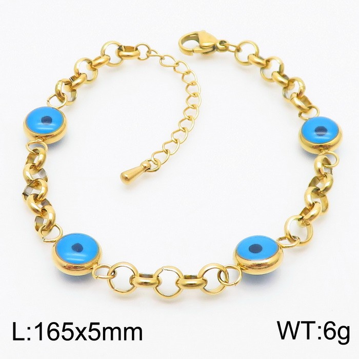 - 5mm O Chain with Blue Eye Charm Bracelet For Women Stainless Steel Bracelet Gold Color