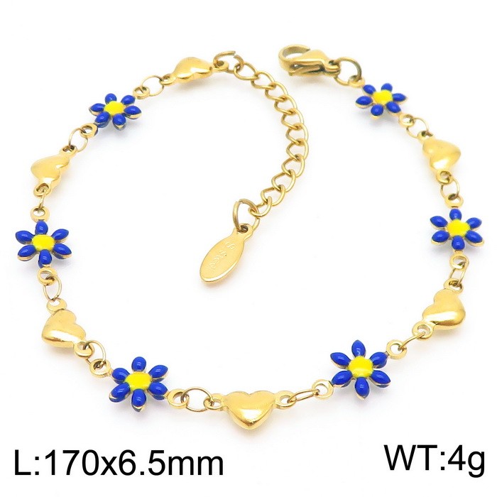 - 170x6.5mm Women's Charm Chain Blue Color Flower Gold Color Love Bracelet Stainless Steel Jewelry Jewelry