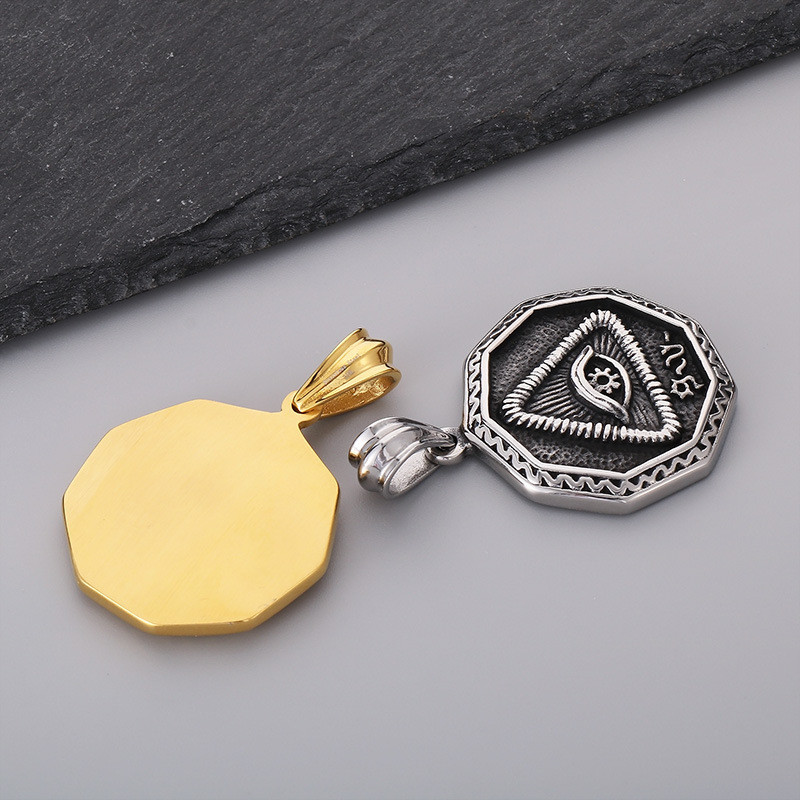 - 42x36mm Men's Charm Pendant Round Triangle Eyes Totem Pendant Stainless Steel Gold Color Necklace Charm Jewelry Jewelry