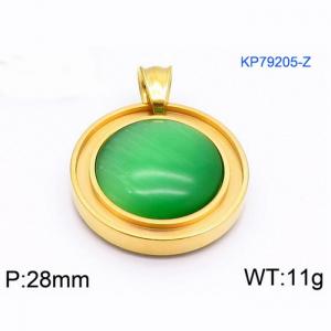 Women Gold-Plated Stainless Steel Round Pendant with Green Shell CharmWholesale Price: