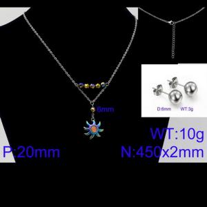 Women Stainless Steel Jewelry Set with 450mm Black Zircon Stamen Rainbow Color Petals Flower Pendant Necklace &EarringsWholesale Price: