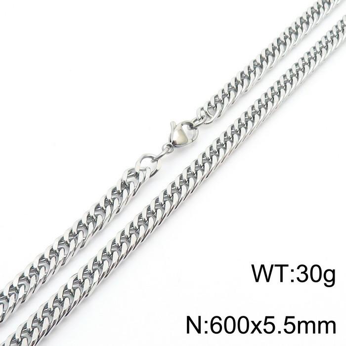 European and American fashion stainless steel 550x5.5mm Cuban chain jewelry temperament silver necklaceWholesale Price: