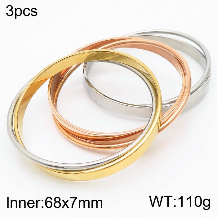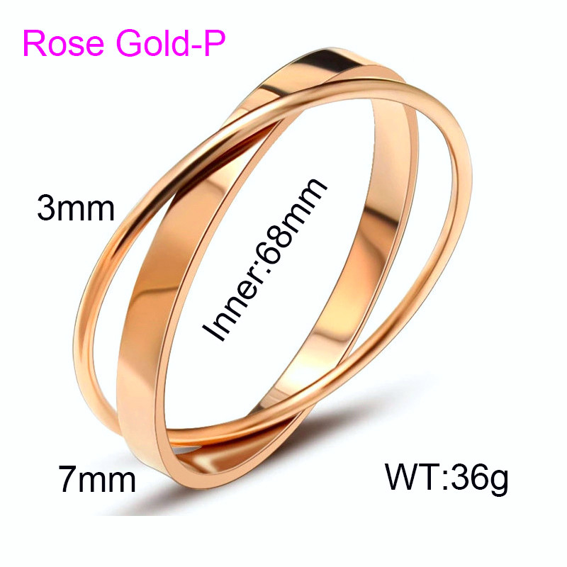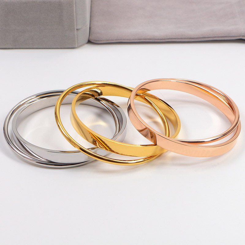 Stainless Steel Rose Gold-plating Interlocking Double Ring Smooth Surface BangleWholesale Price: