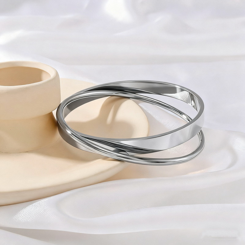 Stainless Steel Interlocking Double Ring Smooth Surface BangleWholesale Price: