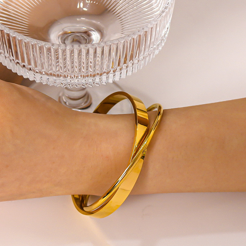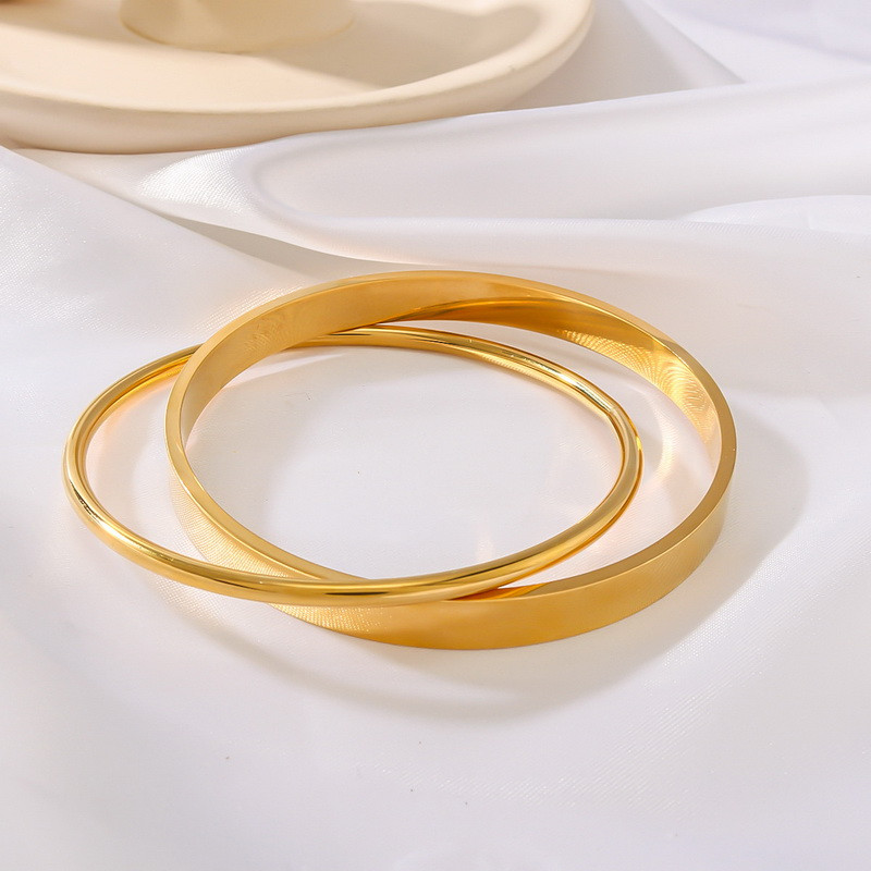Stainless Steel Gold-plating Interlocking Double Ring Smooth Surface BangleWholesale Price: