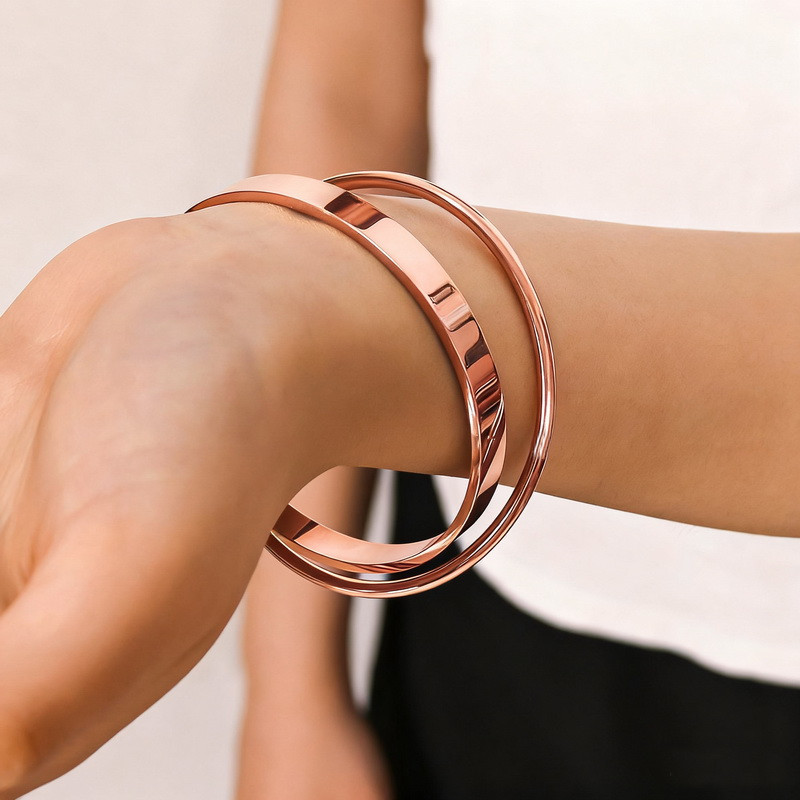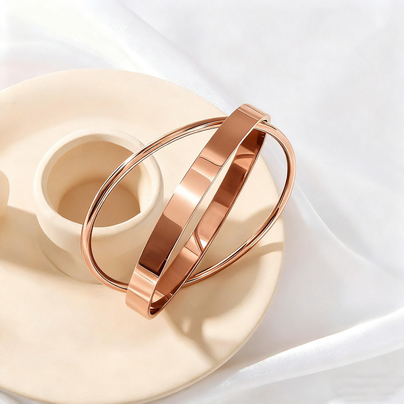 - Stainless Steel Rose Gold-plating Interlocking Double Ring Smooth Surface Bangle