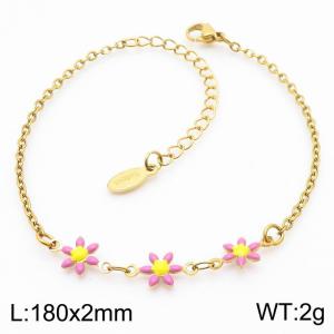 - Fashion Ins Style 18k Gold Plated Stainless Steel Pink Flower Shape Bracelet For Women