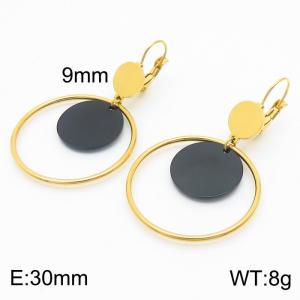 European and American fashion stainless steel creative hollow out circle clip black small circular pendant temperament gold earringsWholesale Price:
