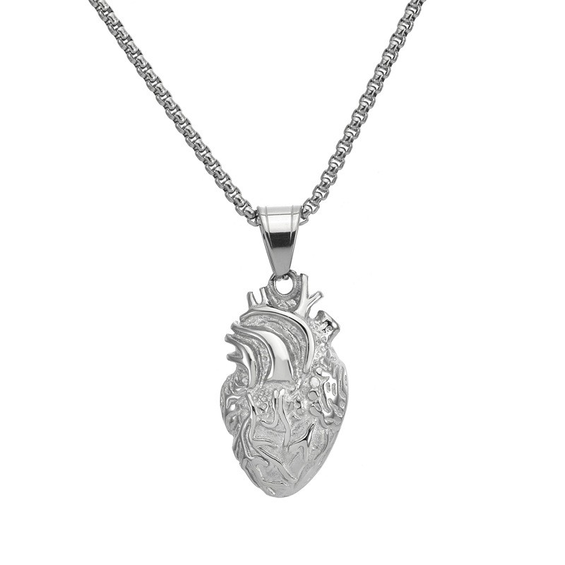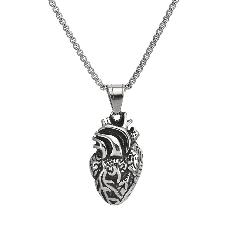 Gothic Punk Stainless Steel Anatomical Heart Pendant Antique JewelryWholesale Price: