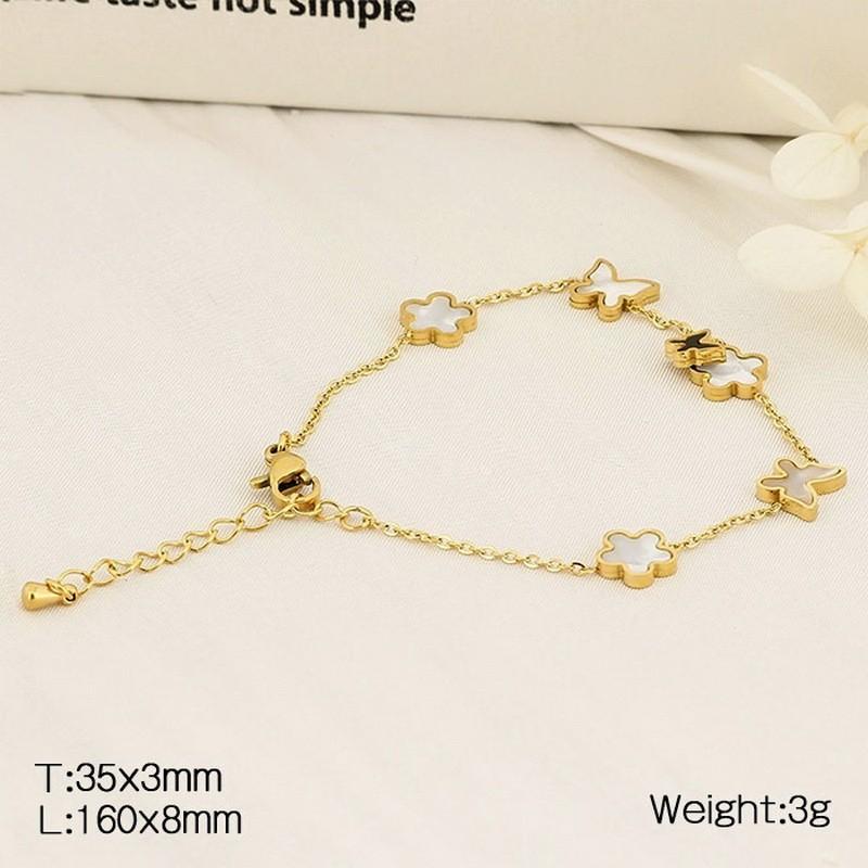 - European and American fashion stainless steel O-shaped chain splicing white seashell flower butterfly accessories for women's charm gold bracelet