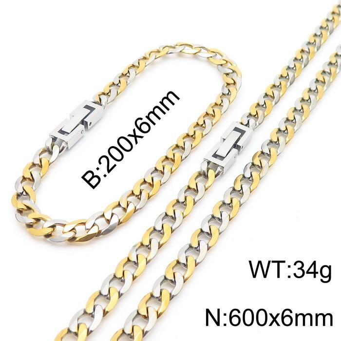 600x6mm Flat Bracelet Necklace Set Stainless Steel Japanese Buckle Chain Neutral Gold Mixed JewelryWholesale Price: