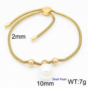 - Gold Color Snake Bones Chain Beads Shell Pearl Pendant Stainless Steel Bracelet For Women