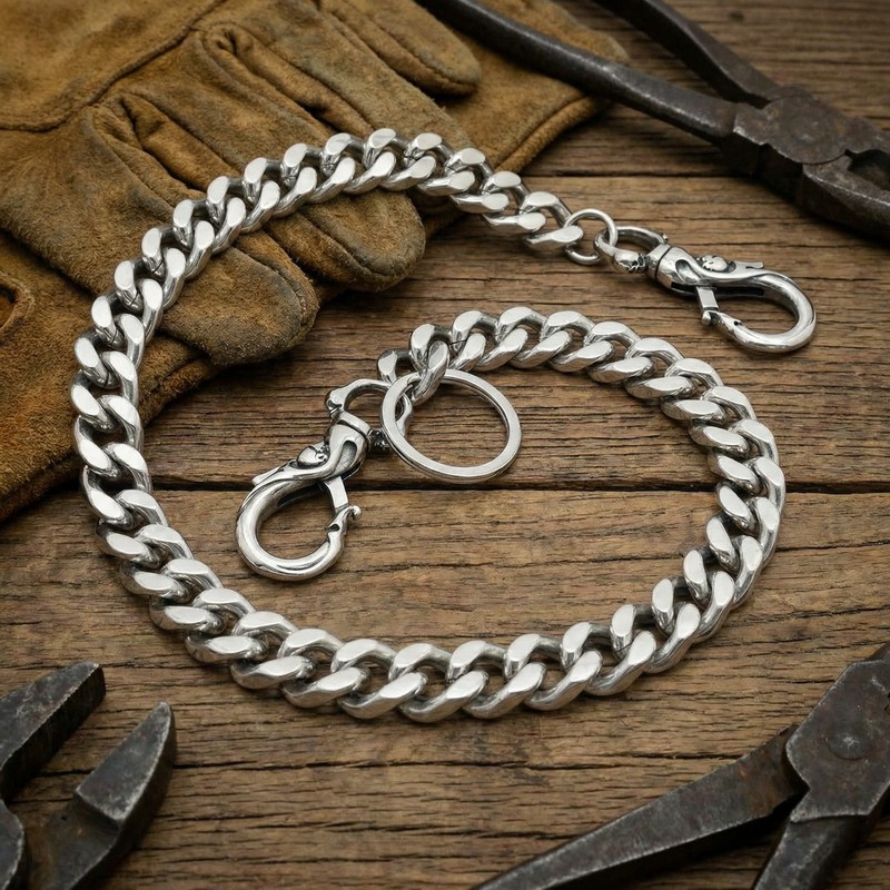 Stainless steel lion head cast buckle paired with 10mm flat cut O-chain pants chainWholesale Price: