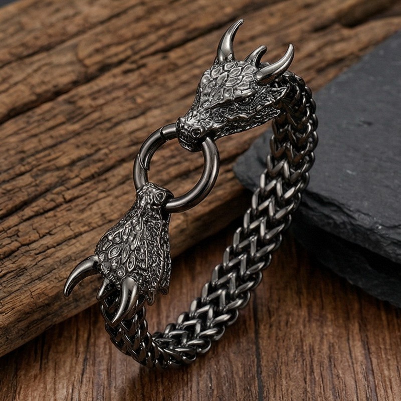 Men's stainless steel cast dragon bracelet, suitable for daily wear with animal-themed jewelryWholesale Price: