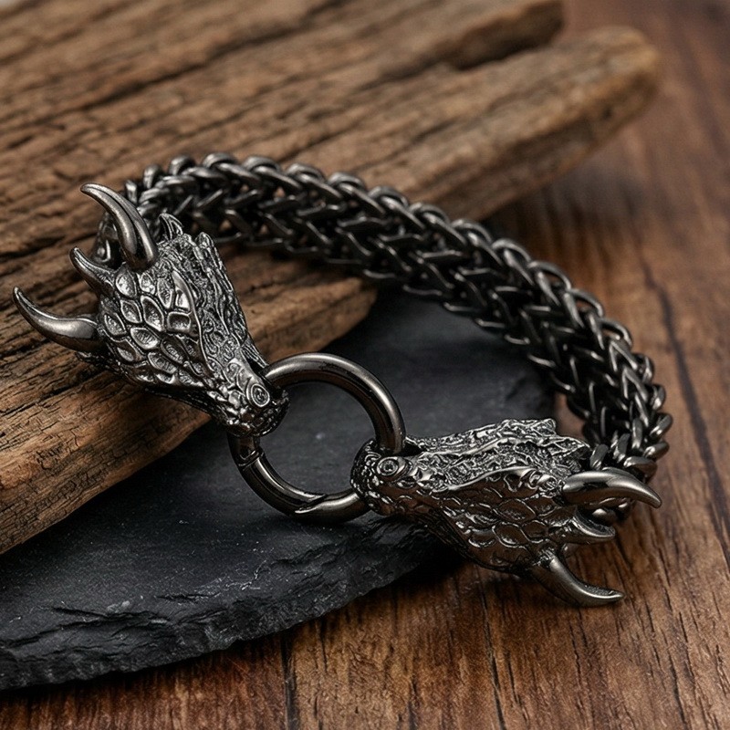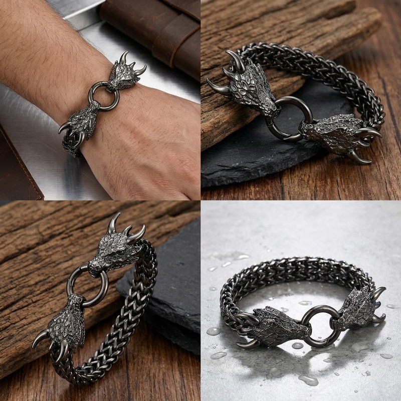 Men's stainless steel cast dragon bracelet suitable for daily wear, animal element antique silver jewelryWholesale Price: