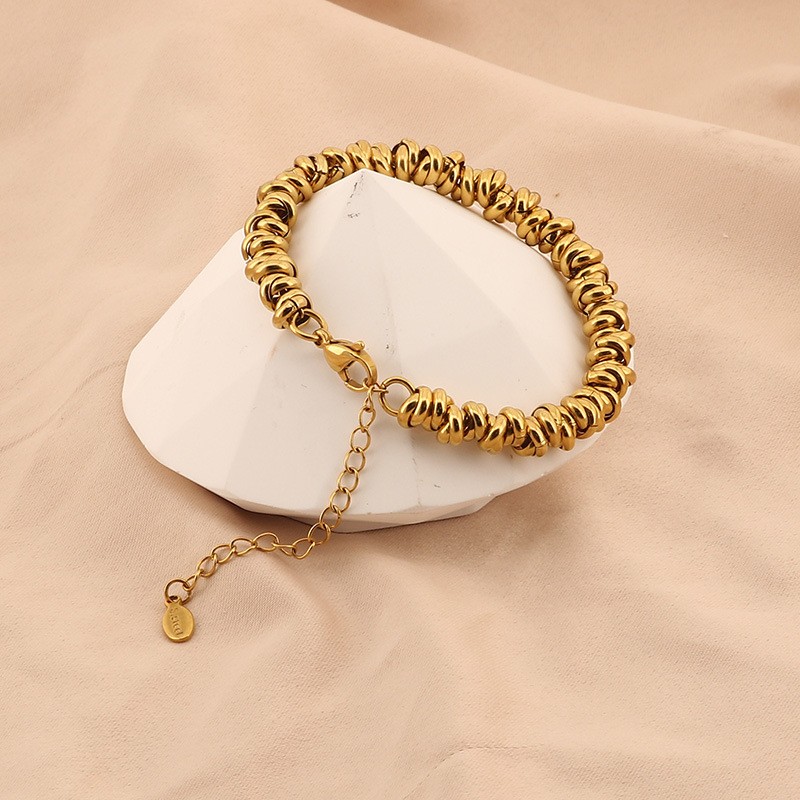 - Stainless steel gold Creative metal circle bead retro personality versatile ring interlocking stainless steel bracelet