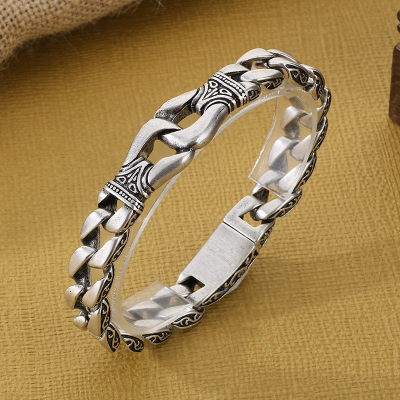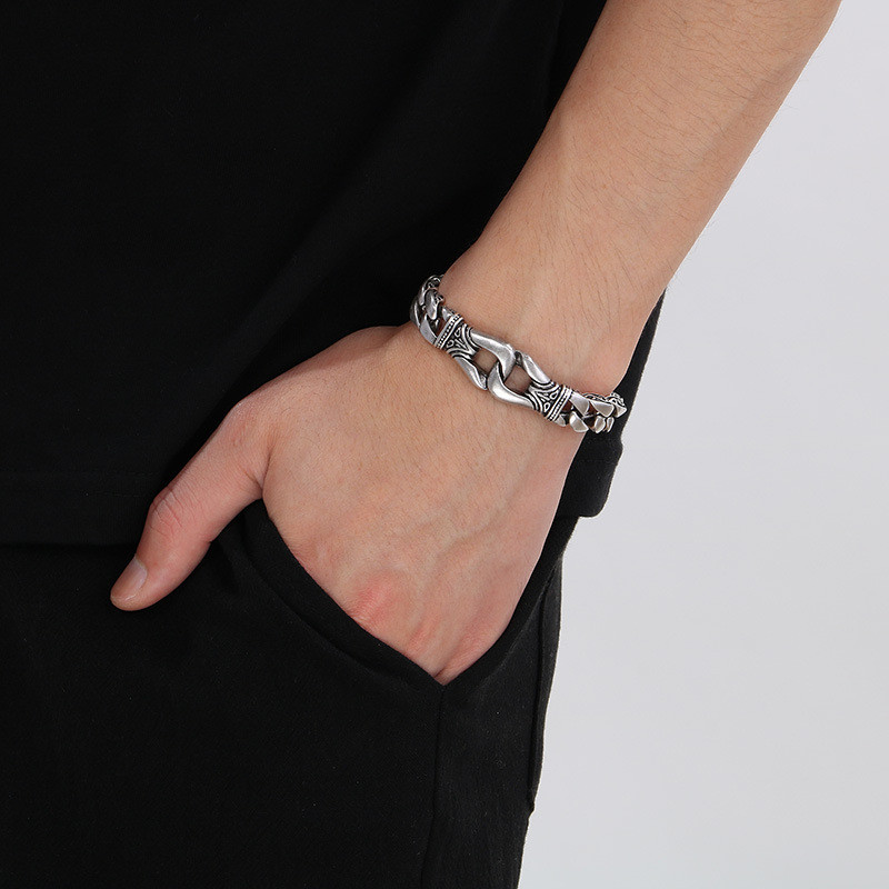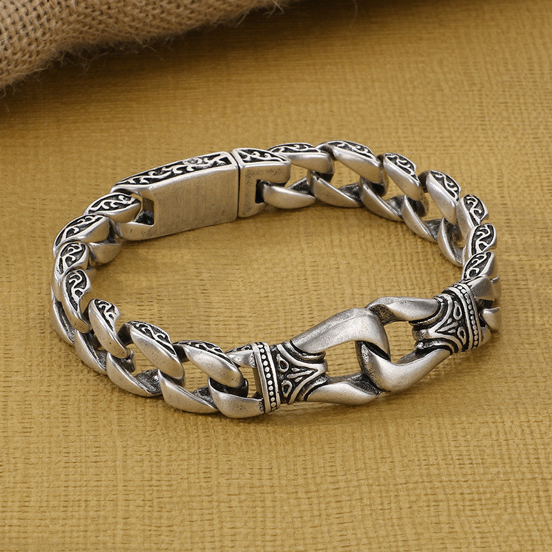 - Hip Hop Rock Curb Chain Stainless Steel Retro carved totem double circle linked men's Bracelet Bangle