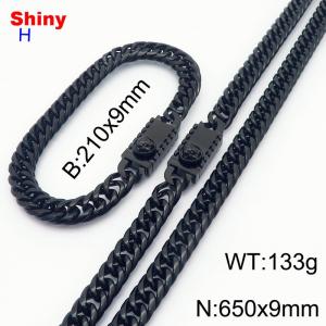 650x9mm necklace stainless steel Cuban chain black color bracelet necklace setWholesale Price: