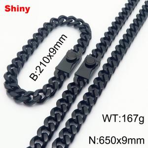 210x9mm Bracelet 650x9mm Necklace Black Color Easy Clasp Stainless Steel Shiny Link Cuban Curb Chain Chunky Jewelry Sets For Men WomenWholesale Price: