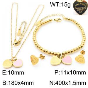 European and American fashion stainless steel light pink double heart-shaped charm gold earrings&bracelets&necklaces 3-piece setWholesale Price: