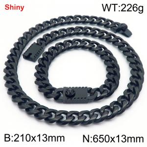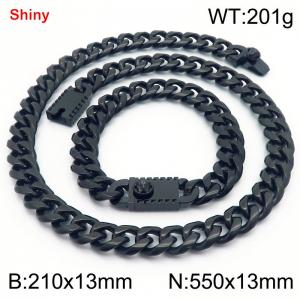 - 550&210x13M Black Color Stainless Steel Cuban Chain Bracelet Necklace Set Fashion Shining Jewelry Set